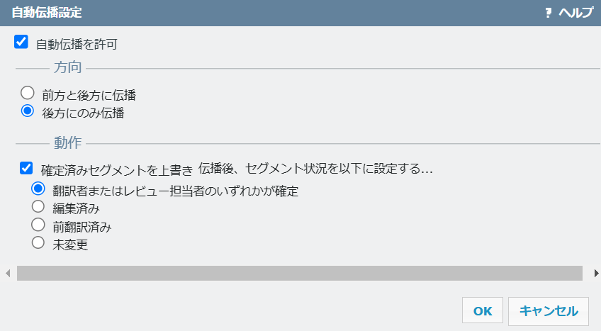 前方と後方に伝播: 原文が同じすべてのセグメントの訳文が更新されます