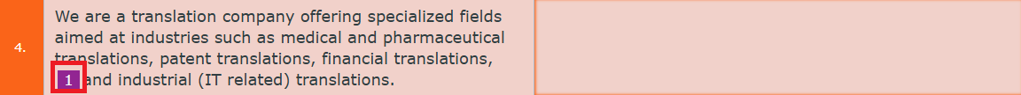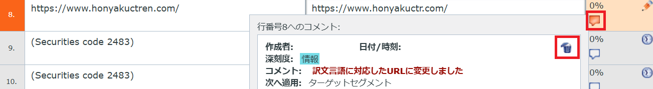 3) コメントを追加するため、訳文欄の右の吹き出しマークをクリックします。