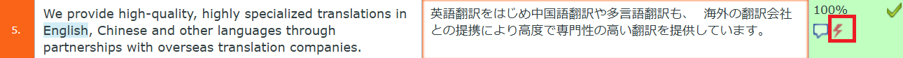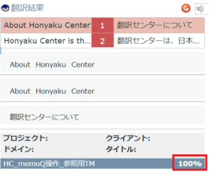 3) 翻訳結果欄に表示されているTMの一致率が高い場合は、流用して翻訳します。