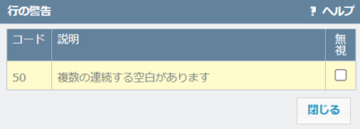 3) 警告の内容が表示されます。今回は「複数の連続する空白」があることが分かりました。