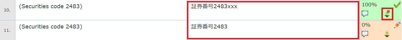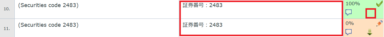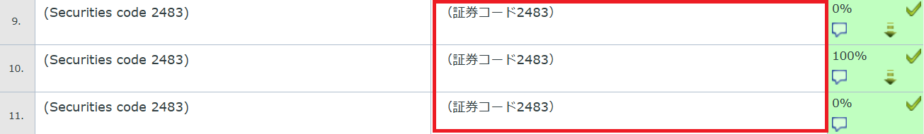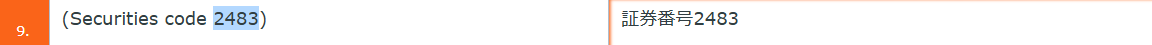 2) 訳文を「(証券コード2483)」に統一することにして編集します。