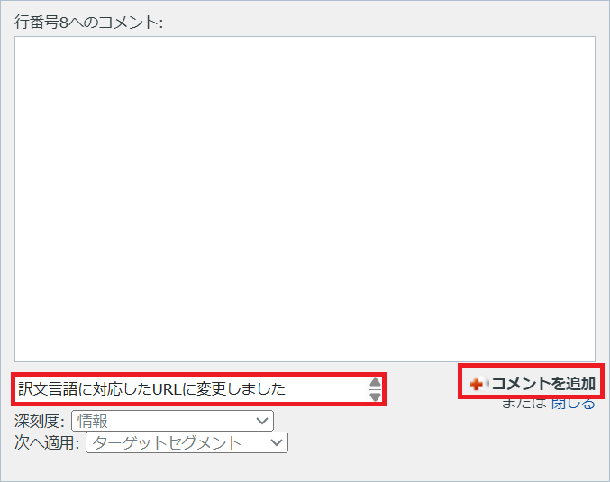 ※ コメントを適用する範囲を指定することも可能ですが、基本的にはターゲットセグメントもしくは行全体にコメントを付けます。