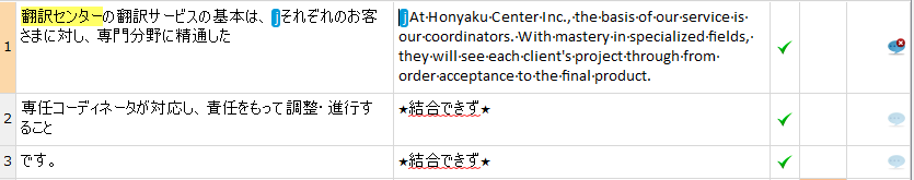強制改行など分節が不自然に分かれないように処理をしてから原稿をアップロードしていますが、稀に結合すべき分節が異常に多い場合があります。このようなときは担当プロジェクトマネージャにご相談ください。