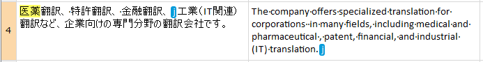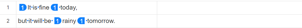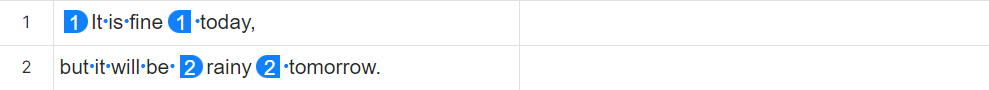 例えば、以下の文ではセルが異なるのに、タグ番号は[1][1][2][2]と連番になっています。これは、最初のセルの「today,」の後が、原稿上では段落内改行(Shift+Enterの改行)で区切られていることを意味します。