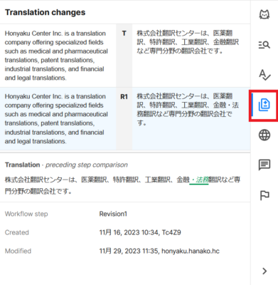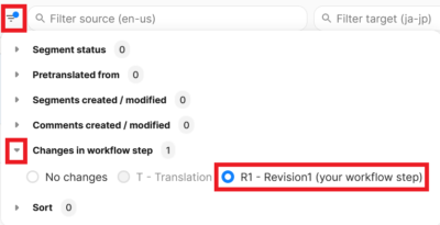 [Changes in workflow step]の左側の▶をクリックし、[ R 1– Revision1 (your workflow step) ] を選択します。