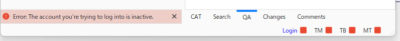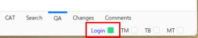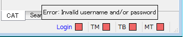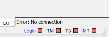 CAT desktop editor が最新版かつ案件がアサインされている状態であるのに「接続できない」場合は、Editor画面右下の「Loginボックス」の色と、直上に表示されるエラーメッセージを確認します。