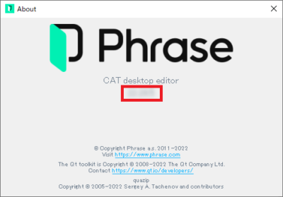 CAT desktop editor に接続できない場合は、まず、Editorのメニュー [ Help ] の [ About ] から、Editorのバージョンを確認してください。