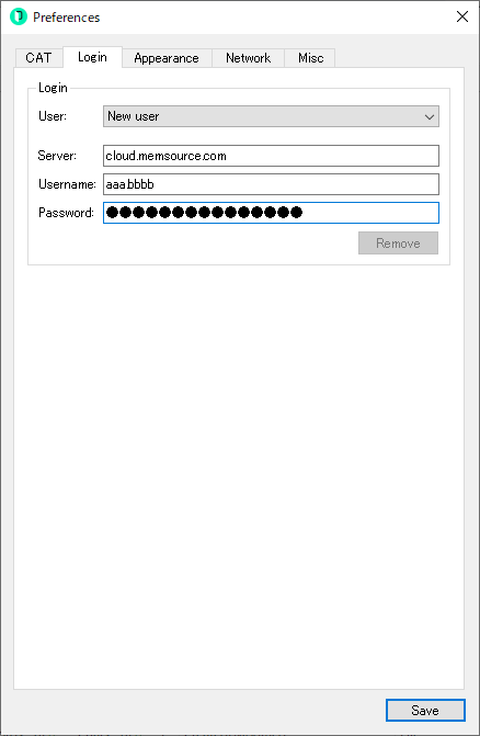インストール後、CAT desktop editor を起動して [ Tools ]  [ Preferences ] の [ Login ] タブでログイン情報が正しく設定されているか確認し、必要があれば編集してください。Preferences設定についてはログイン情報の入力を参照してください。