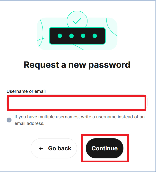 複数のアカウントをお持ちの場合は、当社のUsernameを入力してください(メールアドレスは不可)。
