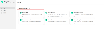 ダッシュボードが表示された場合は「PhraseTMS」タイルをクリックして進めてください。