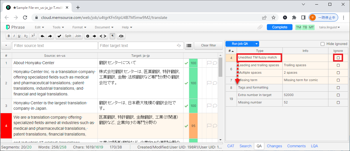 QAチェックを実行し、訳文をもう一度ご確認ください。