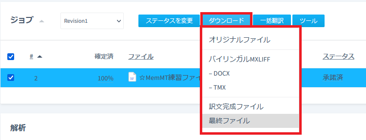 → 複数ジョブの結合ファイルダウンロード (バイリンガルMXLIFF)