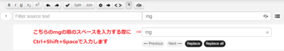 用語等の一括置換は、訳文を一度完成させた後に行ってください。
