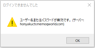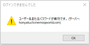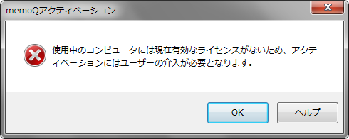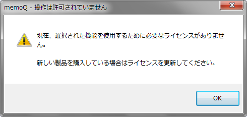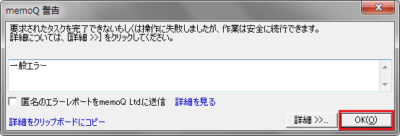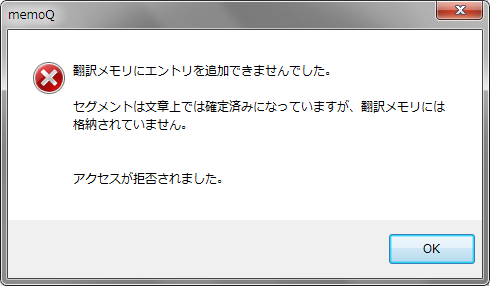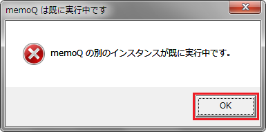 1. 起動時に「memoQは既に実行中です」画面、終了時に「memoQ警告」画面が表示された場合は、[OK]をクリックして閉じます。