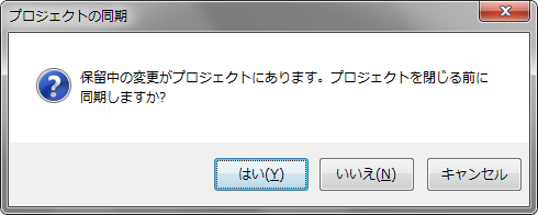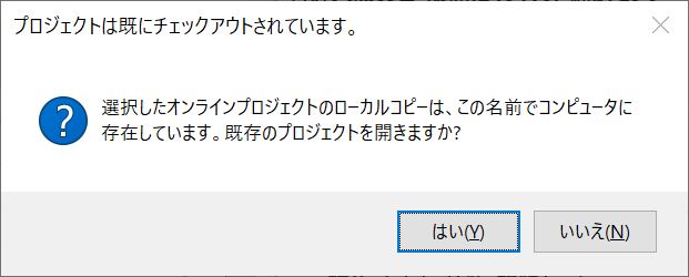 作業を再開する場合は[はい]をクリックしてチェックアウト済みのプロジェクトを開いてください。
