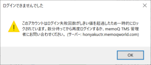 翻訳センターのmemoQでは、パスワードを5回間違えると3分間ロックされます。