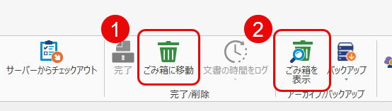ローカルPCのプロジェクトをヘッダメニューから①[ゴミ箱に移動]し、②[ゴミ箱を表示]してから、
