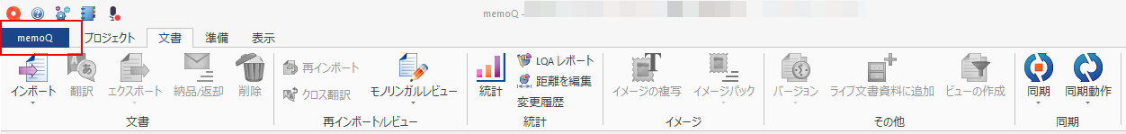 左上の[memoQ]タブ>マイmemoQをクリックし、バージョンの部分をご確認ください