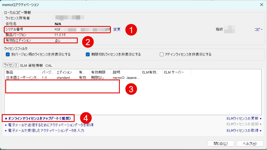 ③にmemoQ4Freeライセンスが付与されれば正常です。