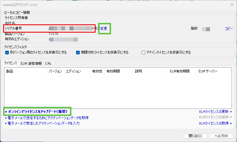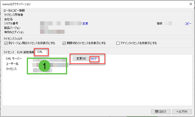 お問合せの際は【CAL】タブと【ライセンス】タブの2つのスクリーンショットを添えてご連絡をお願いします。