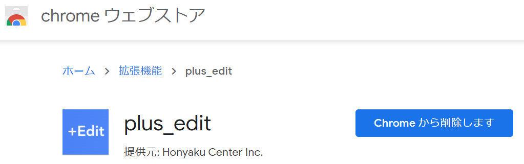 2) Chromeウェブストアの拡張機能 plus_edit にアクセスします。