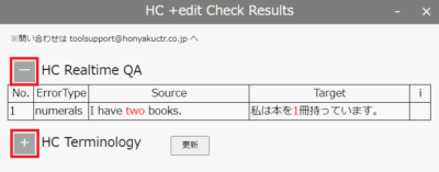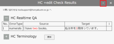 エディターでの+editのチェック(HC Realtime QAとHC Terminology)と同じチェック結果が表示されます。