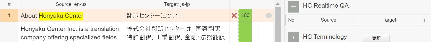 ※ HC realtime QAはエディターでの作業中にQAチェックを行いますが、PhraseのQAチェックとは異なる部分のチェックをしています。