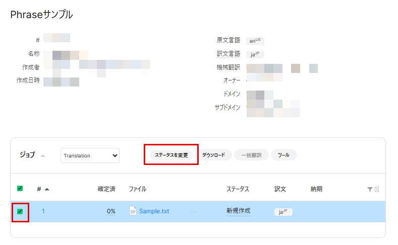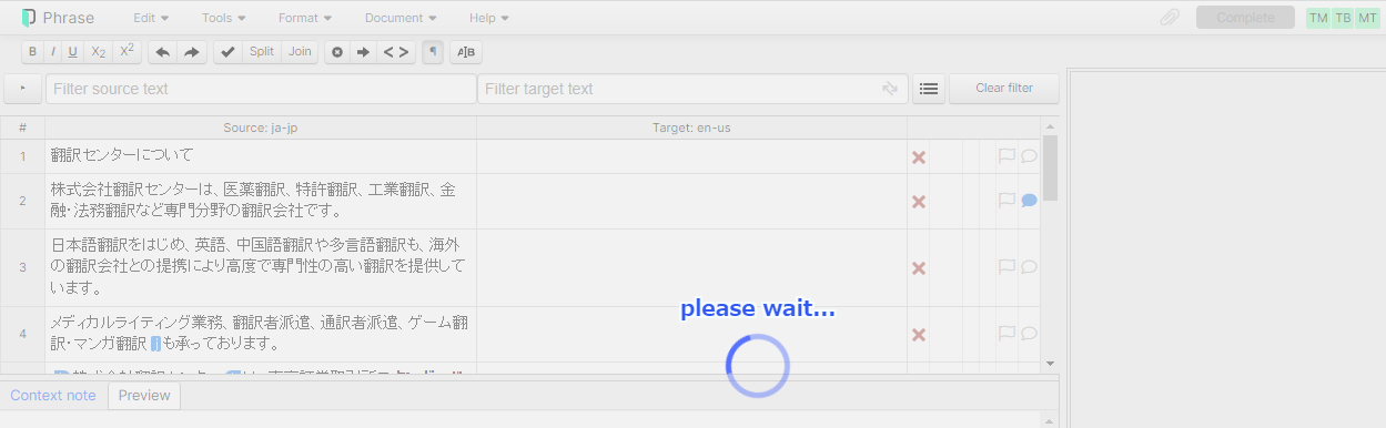 担当案件のジョブ名をクリックすると自動的に CAT web editor が開きます。