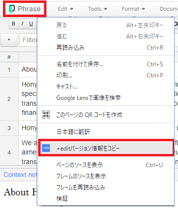 ※ +edit欄が表示されていない場合は、Phraseから一旦サインアウトし、Phraseを立ち上げ直してください。
