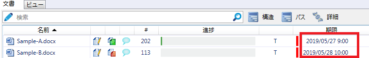 この画面に表示されている期限はプロジェクト全体の期限です。担当文書の期限ではないので注意してください。