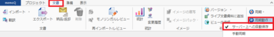 1) [文書]タブの[同期動作]をクリックし、「サーバー上への自動保存」にチェックが付いていることを確認します。チェックが付いていないときはクリックしてチェックを付けます。