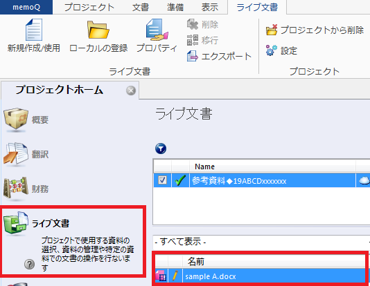 元原稿や参考資料が保存されている場合は、[ライブ文書]からオンライン時に確認できます。