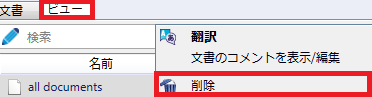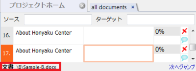1) 入力済みの訳文を一括消去します。処理したい文書をクリックして反転させます。