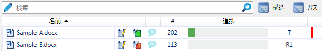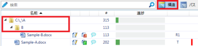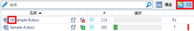 文書のフォルダ構造を確認をしたいときなど、[構造][パス]をクリックすると表示形式が切り替わります。