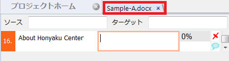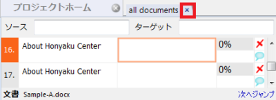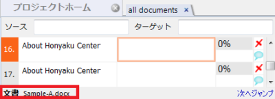 プロジェクトの左メニュー[翻訳]には編集対象の文書が表示されます。