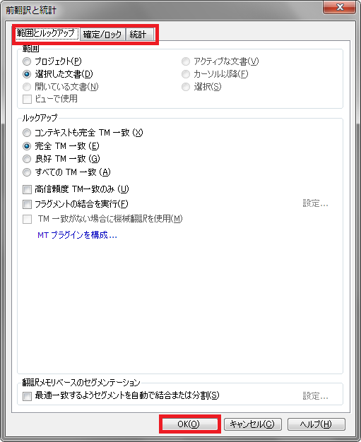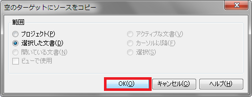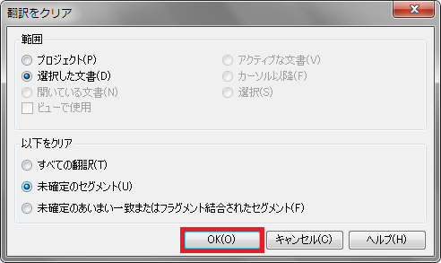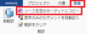 1) 訳文が入力されていないセグメントに原文を反映します。入力済みの訳文欄は変更されません。