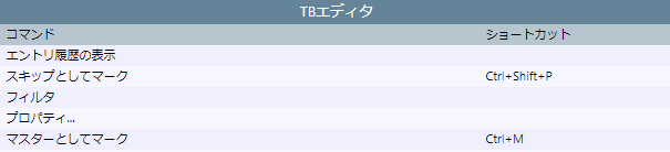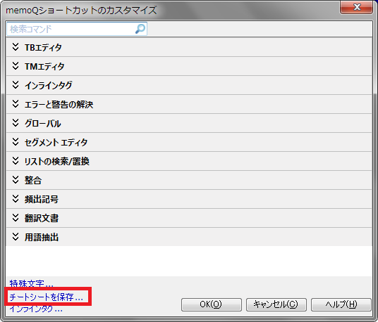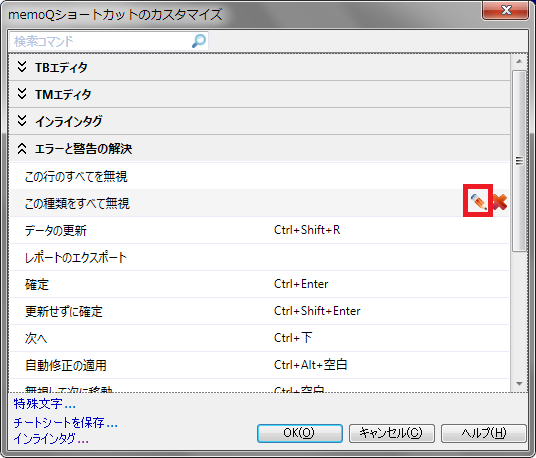 | QA | 警告内容表示 | Ctrl+W | 訳文確定時のQA処理 |