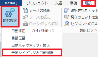 1) [翻訳]タブの[翻訳設定]を開き、[予測タイピングと自動選択]をクリックします。