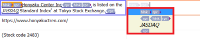 原文に条件にあう要素が含まれているとき、訳文欄ではCtrlで要素のリストを表示できます。