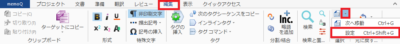 1) [編集]タブの[次へ移動]のドロップダウンから、[設定]をクリックします。