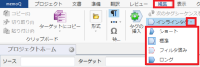 2) 表示された候補から表示形式を選択します。下図の例のように、選択した形式に応じてタグの表示が変わります。memoQが初めての方には[標準]を推奨します。