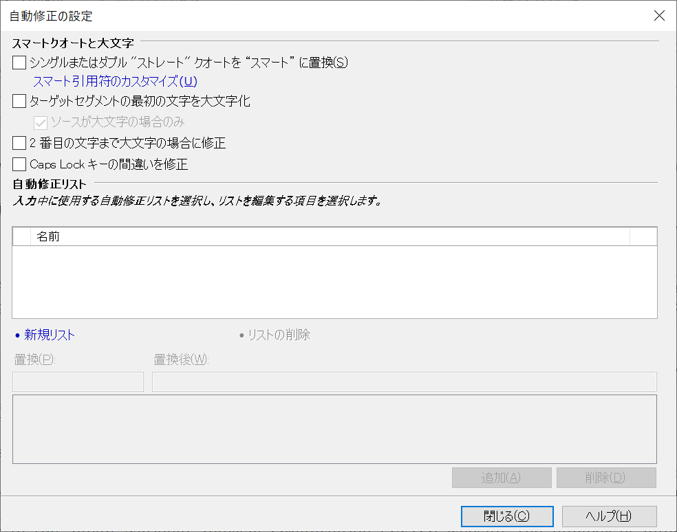 訳文入力時の自動修正の設定です。