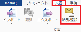 1) 納品する文書を選択し、[文書]タブの[納品/返却]をクリックします。