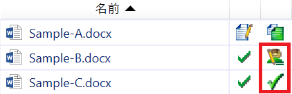 3) 納品が終わると、右側のワークフローの状況を示すアイコンがチェックマークまたは後工程のものに変わります。
