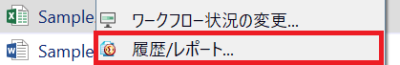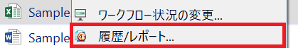 4) 納品日時を確認するには、文書を右クリックして[履歴/レポート]をクリックします。