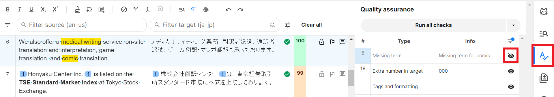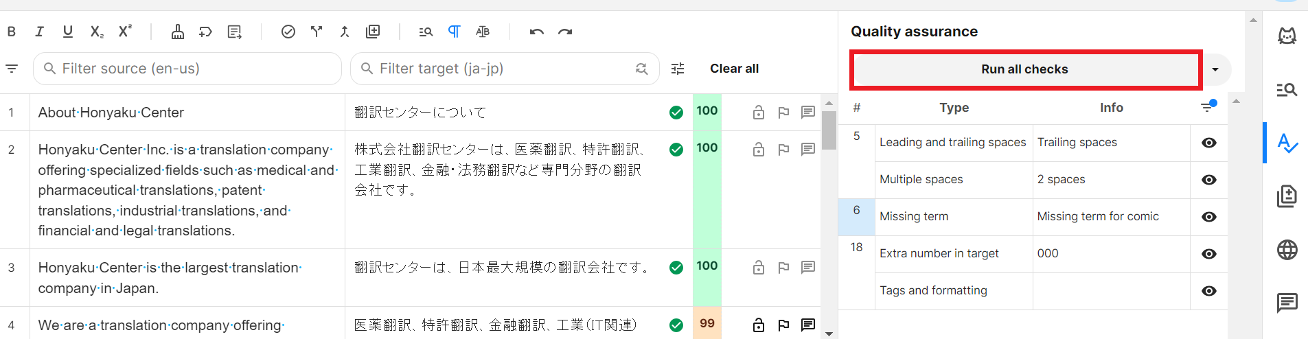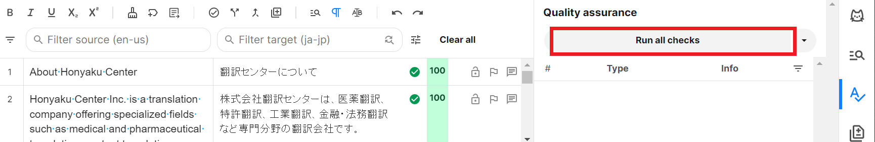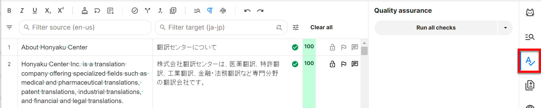 すべてのセグメントを確定後、QAチェックを実施します。