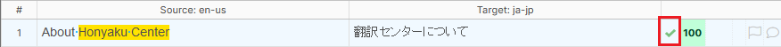 確定すると訳文欄の右の灰色の[✓](編集した場合は赤の[×])が緑の[✓]に変わります。