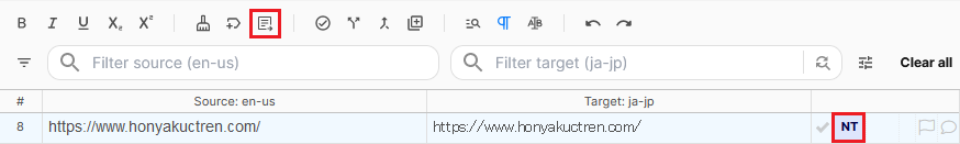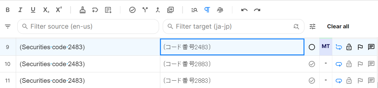 原文が機械的に翻訳不要(Non-translatable)と判断された場合、翻訳時には原文が訳文欄にコピーされます。