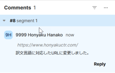 今回は、原文にある弊社の会社名と部署名の訳を調べて訳文を修正し、参照先URLを申し送り事項としてコメント機能で登録してください。